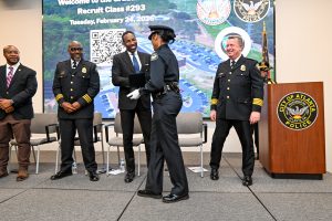 Class 293 completed more than 900 hours of academy instruction, including constitutional policing, de-escalation techniques, defensive tactics, firearms training, and community engagement. The curriculum is designed to prepare officers to respond professionally and thoughtfully in a wide range of situations.