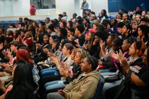 The event featured student leaders from across the district, including Drew Charter School senior Laila Shannon, who introduced the Mayor during the program.