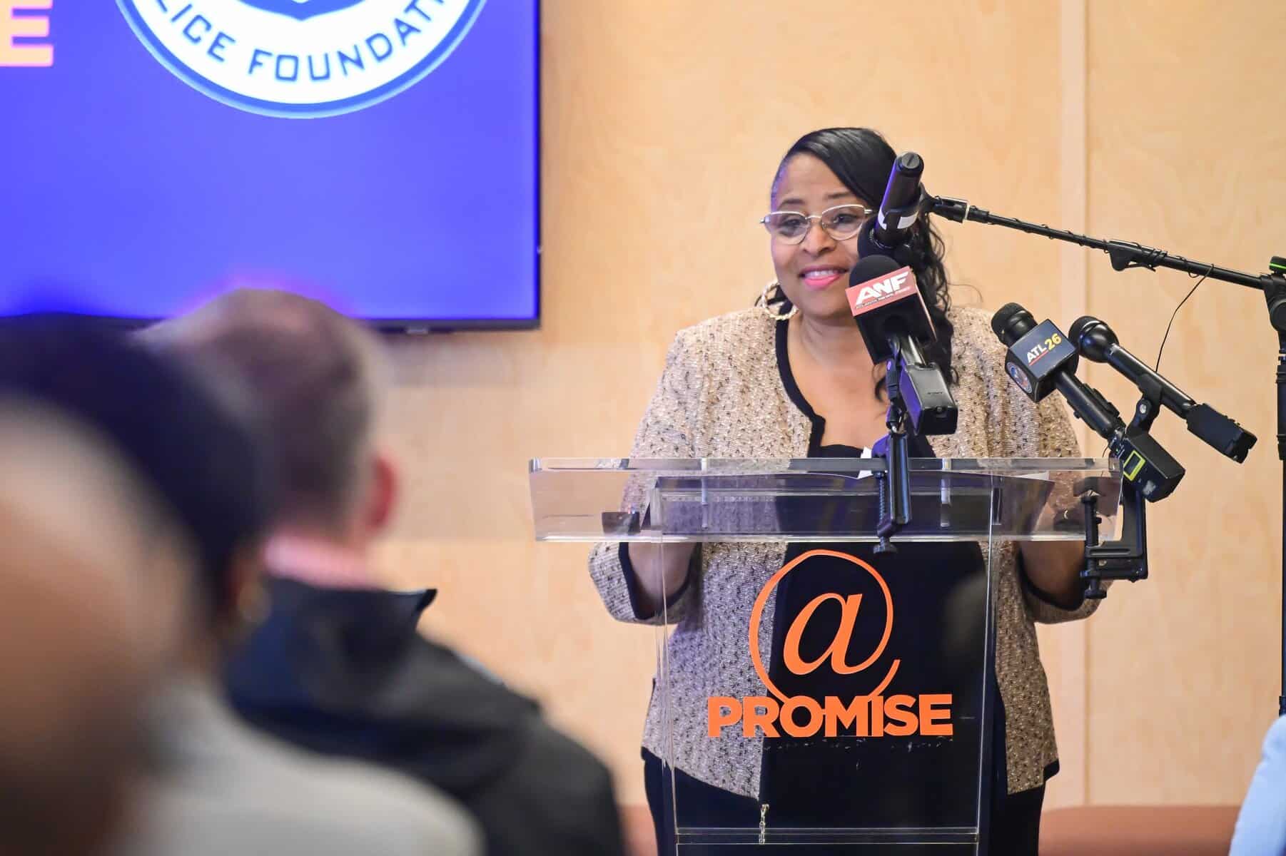 Atlanta Police Chief Darin Schierbaum joined community leaders and youth ambassadors to highlight how At-Promise fits into the City’s comprehensive public safety strategy, which combines enforcement with prevention, diversion, and opportunity. Programs like Midnight Basketball, youth cadet initiatives, and summer employment all connect back to the same goal: keeping young people engaged, supported, and on a positive path.