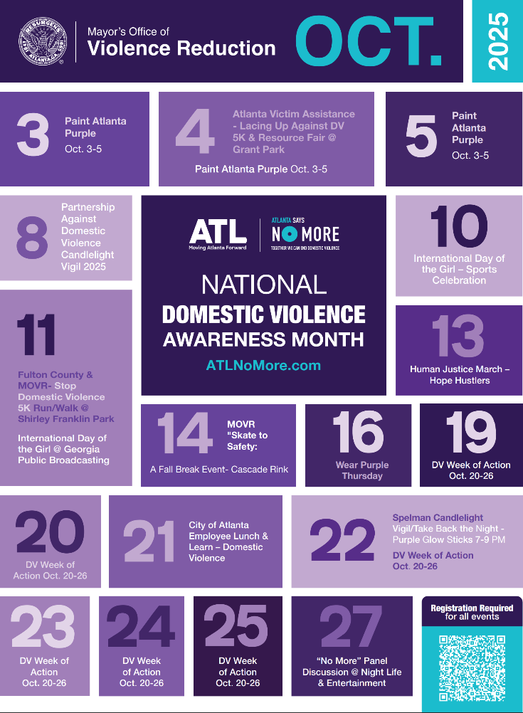 The Mayor’s Office of Violence Reduction invites all Atlantans to take part in Domestic Violence Awareness Month.