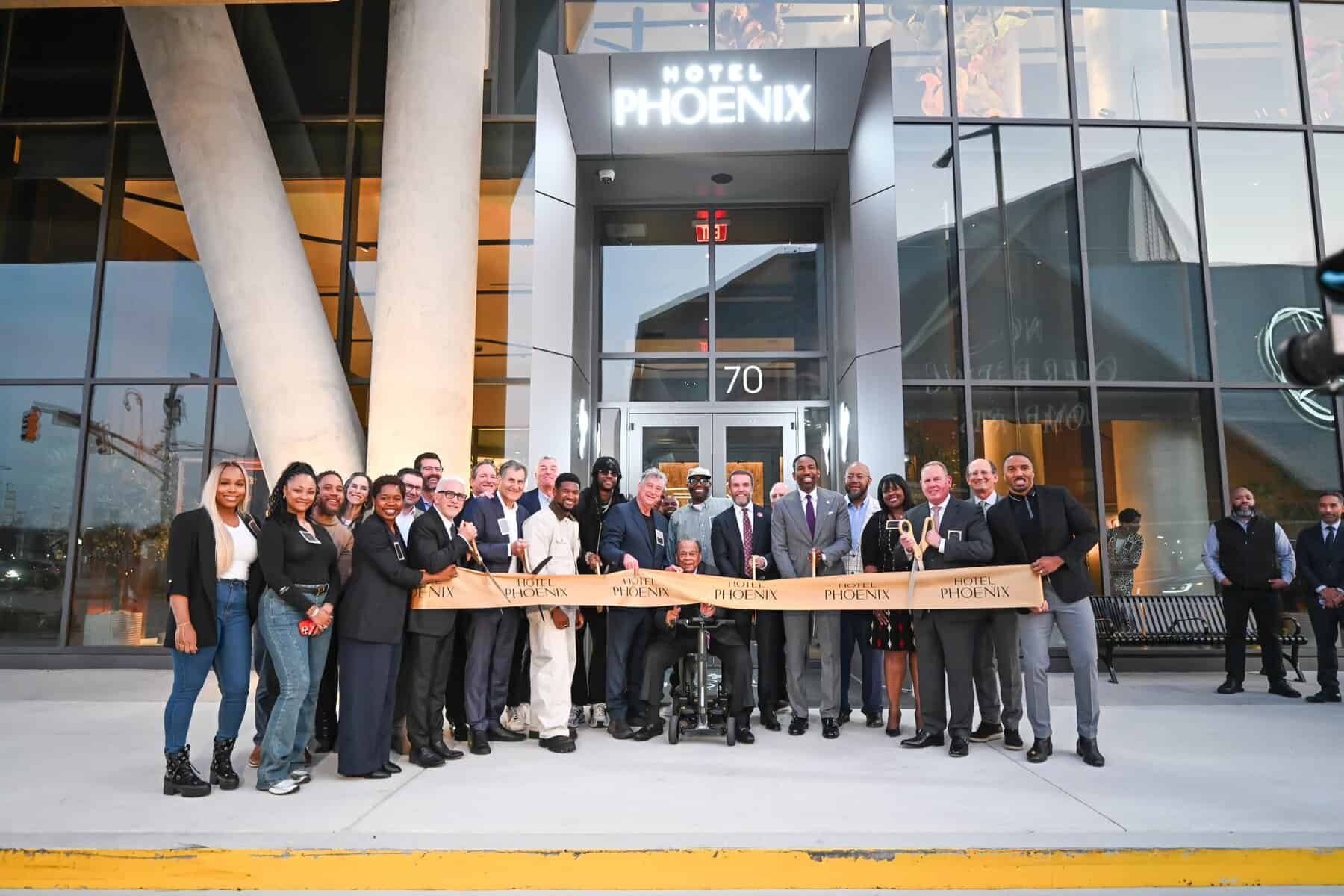 On Thursday evening, Mayor Andre Dickens joined Ambassador Andrew Young, Usher, Centennial Yards Company President Brian P. McGowan, and hospitality leaders for the ribbon cutting of Hotel Phoenix at 70 Centennial Olympic Park Drive.