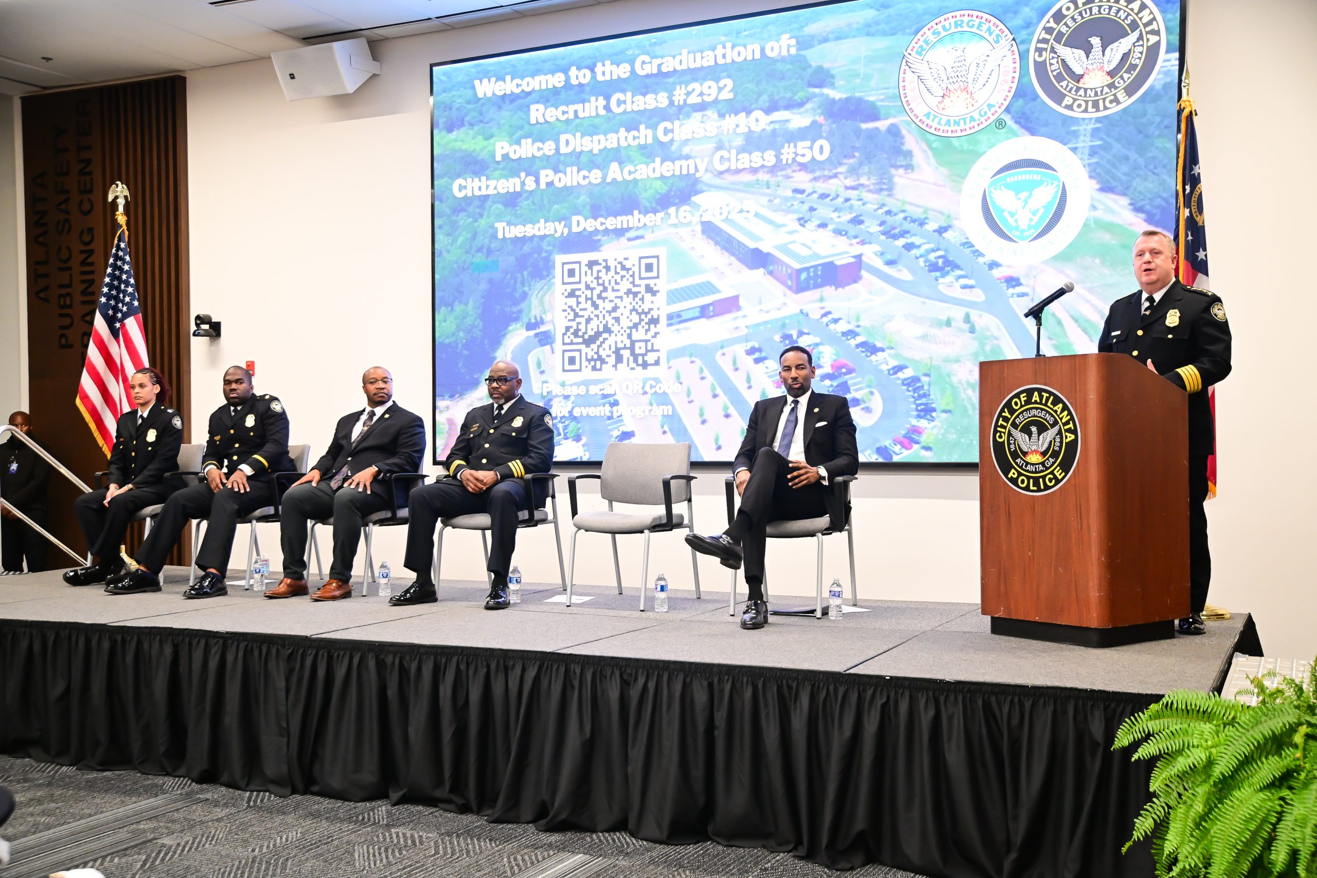 Mayor Andre Dickens joined Atlanta Police Department leadership, instructors, and families on Tuesday evening to recognize graduates from APD Recruit Class 292, E911 Dispatch Class 10, and Citizens Police Academy Class 50. The ceremony honored individuals who chose a life of service in support of Atlanta’s safety.